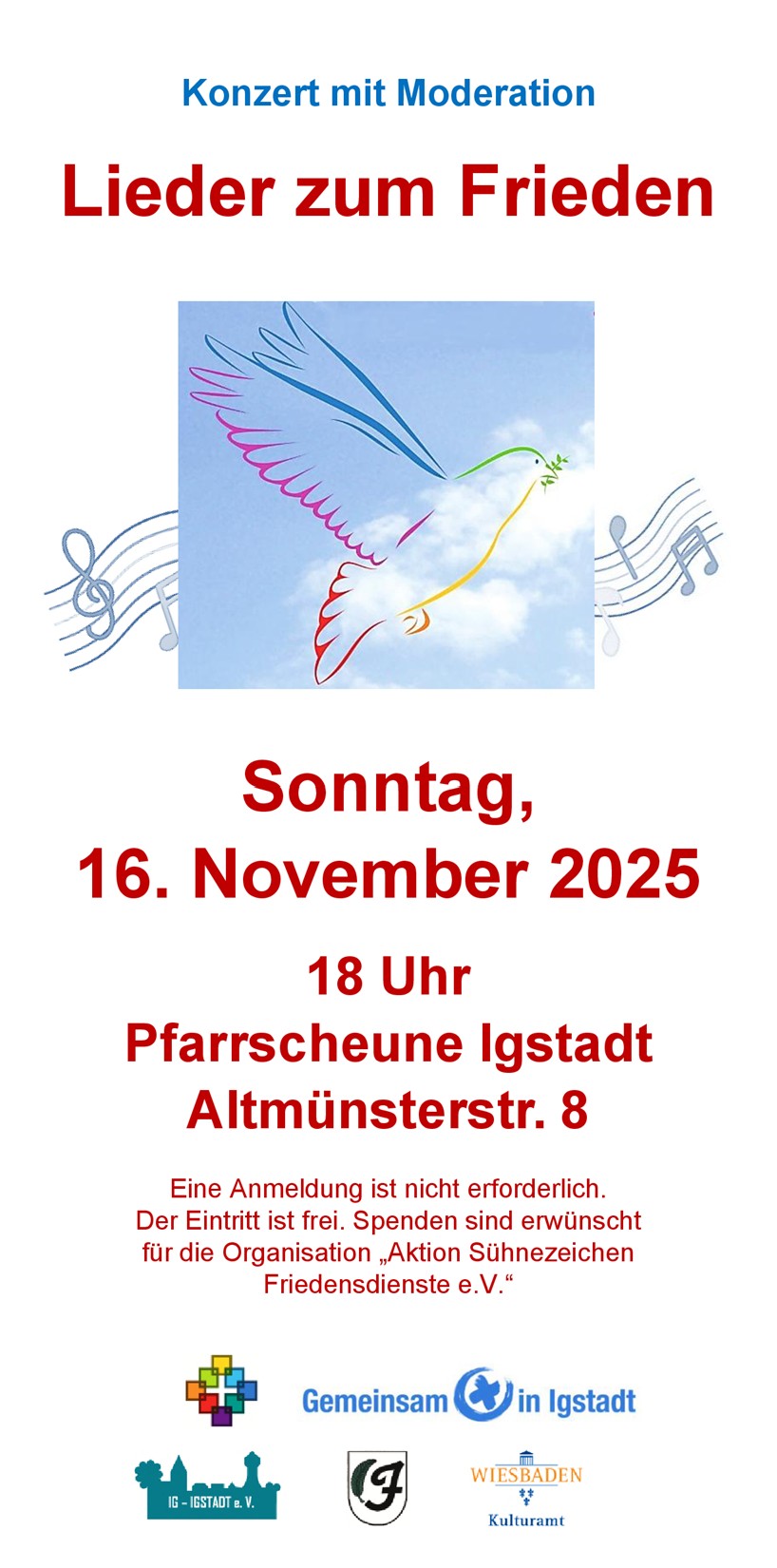 Am Sonntag, 16. November 2025 um 18 Uhr laden die Evangelische Kirchengemeinde Igstadt, die IG Igstadt e.V. und der Ortsbeirat zu einem besonderen Konzert in die Pfarrscheune (Altmünsterstraße 8) ein.