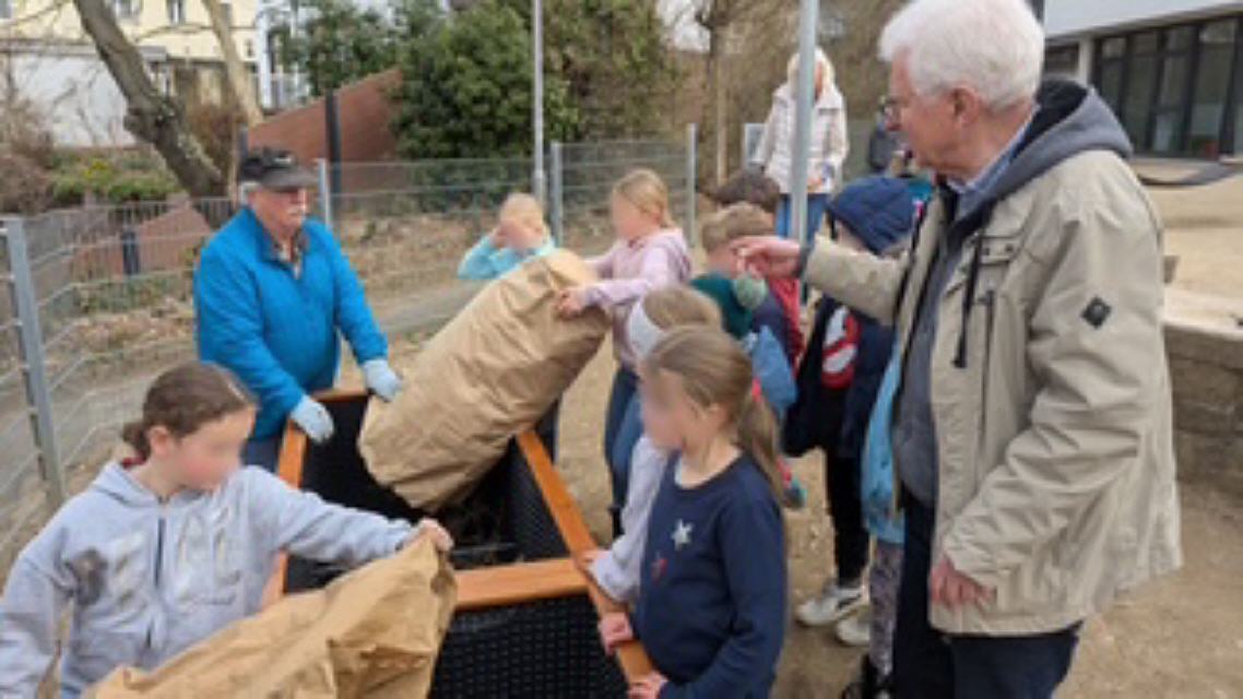 Zur Unterstützung der Bildungsinitiative „Klima“ hat der Obst- und Gartenbauverein Igstadt im Hof der Peter-Rosegger-Grundschule zwei Hochbeete aufgebaut. Die vom Förderverein der PRS beschafften Hochbeete wurden durch einige fleißige Helfer zusammen gebaut und fachgerecht mit Mäusegitter und Folie ausgestattet. Zahlreiche Kinder halfen bei der Erstbefüllung mit Reisig und Laub aus. Nach der endgültigen Befüllung mit geeigneter Erde stehen die Beete zum praktischen Einsatz bereit.