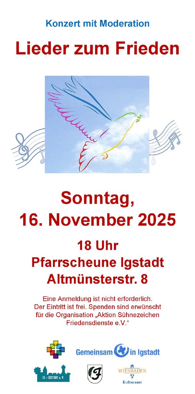 Am Sonntag, 16. November 2025 um 18 Uhr laden die Evangelische Kirchengemeinde Igstadt, die IG Igstadt e.V. und der Ortsbeirat zu einem besonderen Konzert in die Pfarrscheune (Altmünsterstraße 8) ein.
