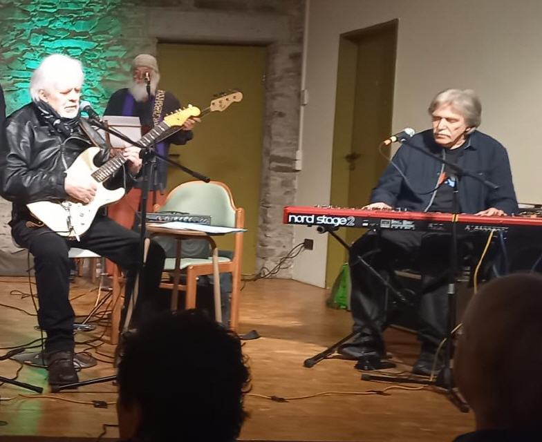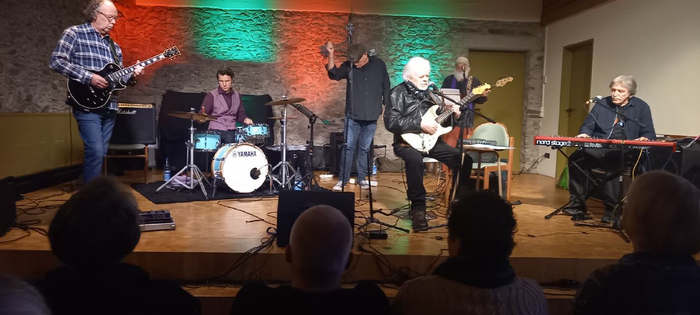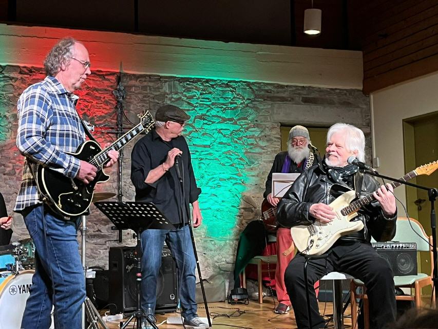 Der Gitarrist Frank Diez, der zu den besten Blues- und Rockgitarristen Europas gehört, begeisterte am Sonntag das Publikum in der ausverkauften Pfarrscheune mit seinem grandiosen Gitarrenspiel, seiner markanten Stimme und amüsanten Episoden aus seinem bewegten Musikerleben. Die Backing Band mit den Igstadtern Albert und Nils Lang, Jochen Vanscheidt sowie Hajo Gehrmann aus Bierstadt und Hubert Koch aus dem Ruhrpott trug mit zum Erfolg der Veranstaltung „Kirche im Dorf – Kultur ganz nah“ bei. Auch Frank Diez war begeistert: „Ich freue mich, unter Freunden zu sein…“.
