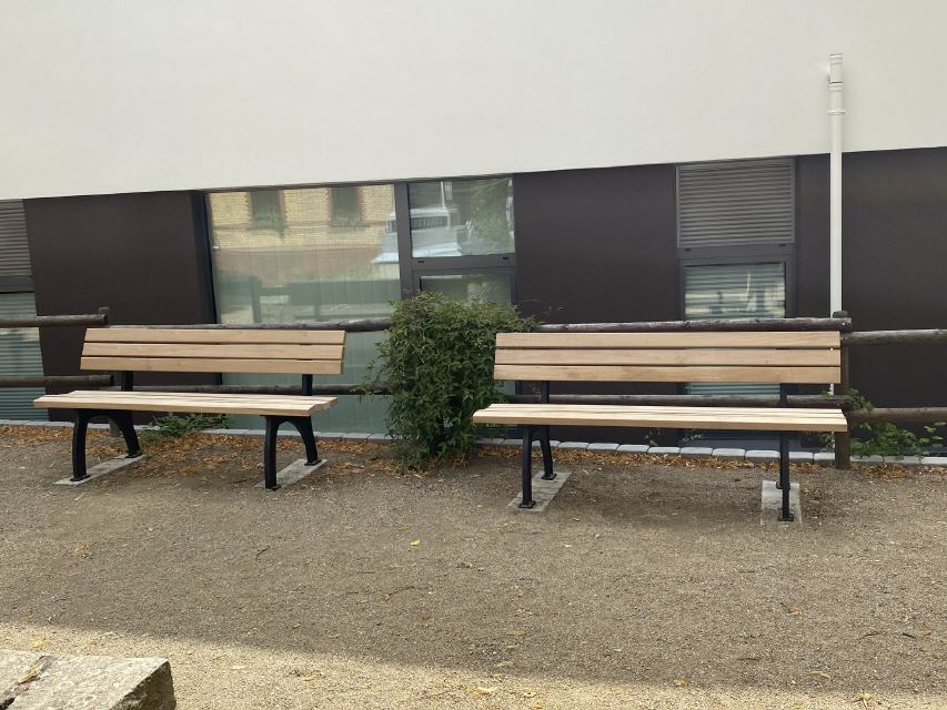 ...da nach dem Neubau des Schulgebäudes die Bänke auf dem Lindenplatzes, seiten der Stadt Wiesbaden, spurlos verschwunden waren. Wurden nun endlich vier neue Bänke montiert. Einen schöneren Mülleimer gab es anscheinend als Entschädigung dazu.