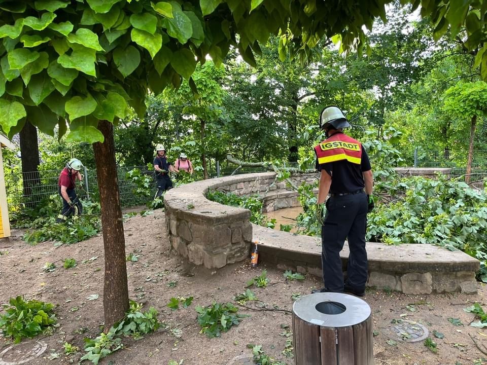 Am 22.06.23 traf die Unwetterfront leider auch Igstadt. Gegen 18:50 Uhr wurde die FFI alamiert. Gemeinsam mit der Feuerwehr Wiesbaden galt es zahlreiche Einsatzstellen in Igstadt abzuarbeiten. Vorwiegend galt es Windbruch und lose Teile auf Dächern zu beseitigen. So zum Beispiel auf dem Schulhof.
