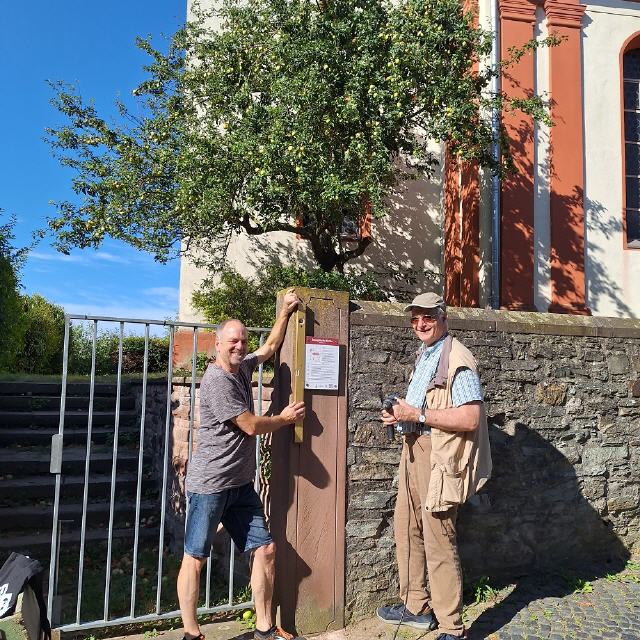 Die Ev. Kirche ist mit ihrem weithin sichtbaren Kirchturm neben dem Wasserturm eine Landmarke Igstadts. Jeder kennt sie und viele auch den wunderschönen Innenraum, aber wer kennt auf Anhieb ihre Entstehungsgeschichte und Besonderheiten? Der Heimat- und Geschichtsverein freut sich, eine weitere Informationstafel in Igstadt an der Kirche anbringen zu können. Gemeinsam mit Adelheid Ewen, der Vorsitzenden des Kirchenvorstandes, wurde die Tafel am Sonntag, 8. September 2024 um 17 Uhr enthüllt. Michael Weidenfeller und Ingrid Dahl (HGV) berichteten vor 25 Gästen über das Projekt "Informationstafeln" und über die historischen Besonderheiten der Ev. Kirche, der einzigen Kirche im Ort. Nur wenig bekannt ist, dass im Jahre 1758 der Glockenturm erhöht wurde, wodurch die Kirche ihr heutiges Aussehen erhielt. Zur Diskussion stand damals neben dem spitzen Kirchendach auch die Ausführung mit abgerundeter Spitze. Die Pläne hierfür blieben erhalten. Für Interessierte liegt immer in der Kirche ein Überblick-Flyer aus. Weitergehende Informationen enthalten die Publikation „CHRONIK 1“ und die Website des Vereins.