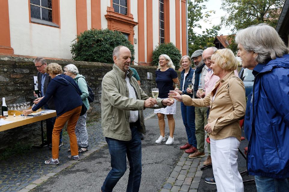 enthüllt. Auch das Glas Sekt fehlte nicht zur Übergabe.