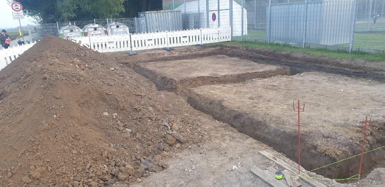 Des Rätsel Lösung ist, hier entstehen zwei Lagerhallen der Kerbegesellschaft und des Schützenvereins. Die Hallen haben die Maße von 6 auf 6 Meter und eine Höhe von 3,50 Mtr..