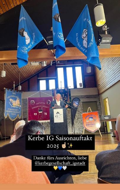 Der jährliche Saisonauftakt der IG Kerb fand dieses Jahr in Igstadt statt – anlässlich des 50-jährigen Bestehens der Kerbegesellschaft Igstadt. Über 100 Gäste, darunter Vertreter anderer Kerbegesellschaften, der Oberbürgermeister, der Stadtverordnetenvorsteher, Verwaltungsmitarbeiter und Mitglieder des Schaustellerverbands, feierten gemeinsam den Start in die neue Saison.