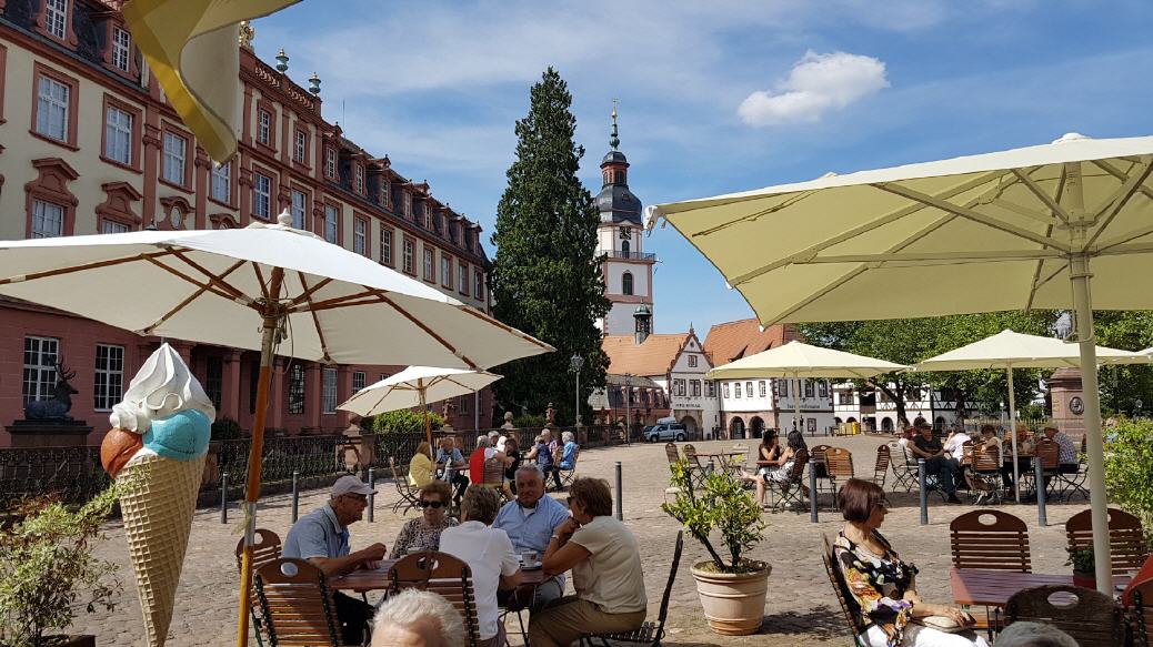 Weiter am Main entlang führte die Route über Miltenberg, Amorbach und Michelstadt nach Erbach im Odenwald. Durch den Lustgarten betrat die Reisegruppe die historische Altstadt von Erbach, die vor allem durch das Ensemble von gräflichem Schloss, Lustgarten, Organgerie und historischem Rathaus rund um den Marktplatz geprägt wird. Entlang der Mümling und im Altstadtbereich laden viele schöne Plätze zum Verweilen ein. Imposante Fachwerkhäuser und die zum Schloss gehörenden repräsentativen Gebäude erzählen von der wechselvollen Geschichte einer Stadt, die wesentlich von den Grafen zu Erbach-Erbach geprägt wurde.