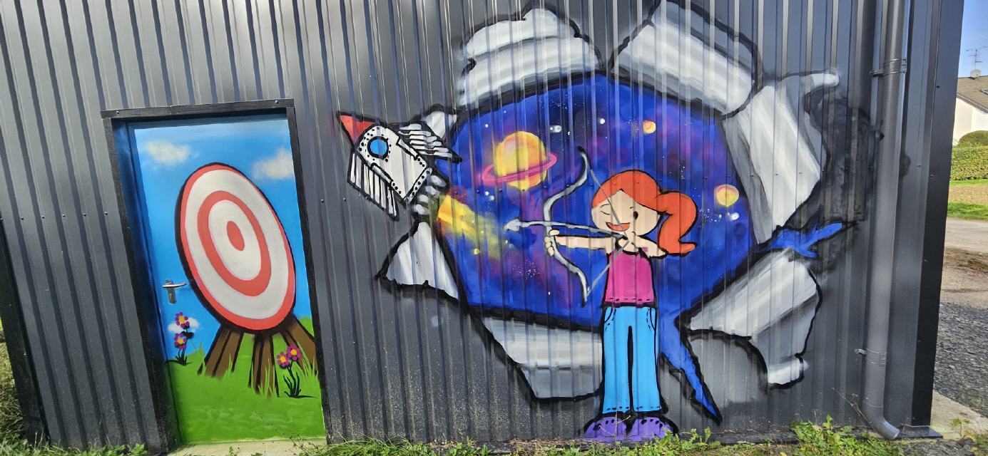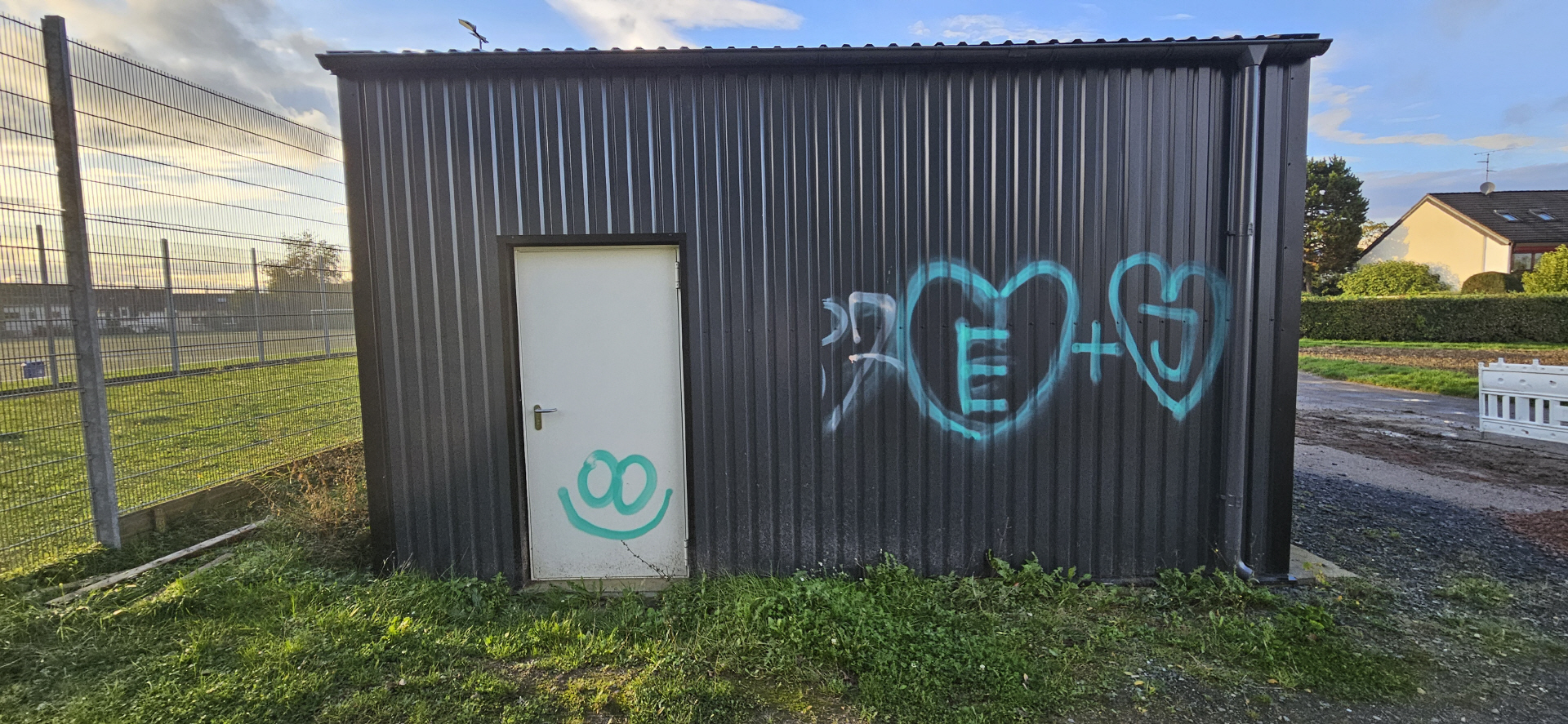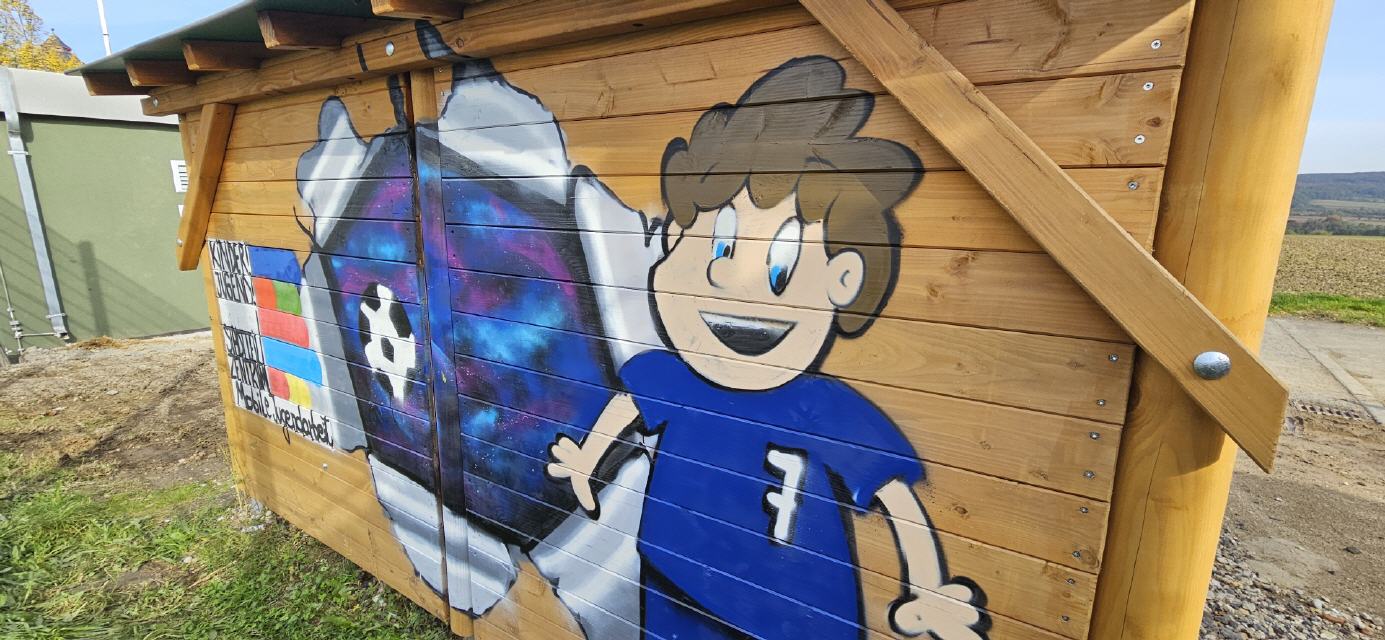Nachdem die Halle der Schützen nach nur 2 Jahren beschmiert wurden entstand die Idee, die Hallenwand mit Graffiti zu gestalten.