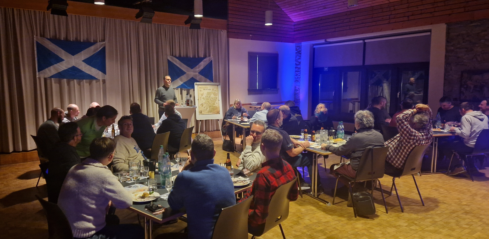 Am 23. Januar 2026 fand in der Pfarrscheune Igstadt ein ausverkaufter Whiskyabend des Förderkreises „Lebendige Pfarrscheune“ statt. Rund 30 Gäste erlebten einen genussvollen Abend mit ausgewählten Scotch Single Malt Whiskys aus verschiedenen Regionen Schottlands, fachkundig und unterhaltsam präsentiert von Whiskykenner Thomas Schlütter.