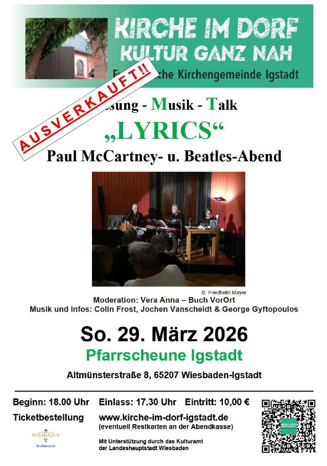 der Ev. Kirchengemeinde Igstadt weit öffnet. Genießen Sie das Café-Programm von Hildegard und Holger Meireis mit leichter Muse zum Mitsingen und